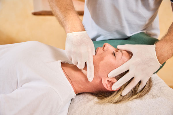Berührungen und leichte Bewegungen unterstützen wir den sogenannten kraniosakralen Rhythmus, der